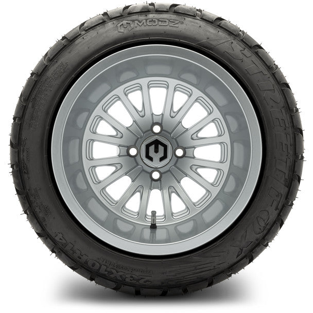 MODZ® 14x10" Assassin Glossy Silver Wheels and Tires Combo