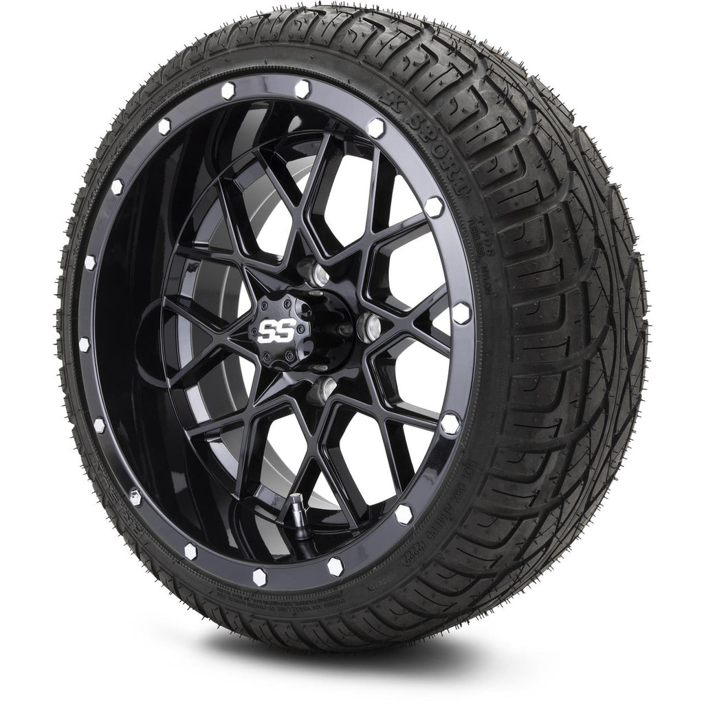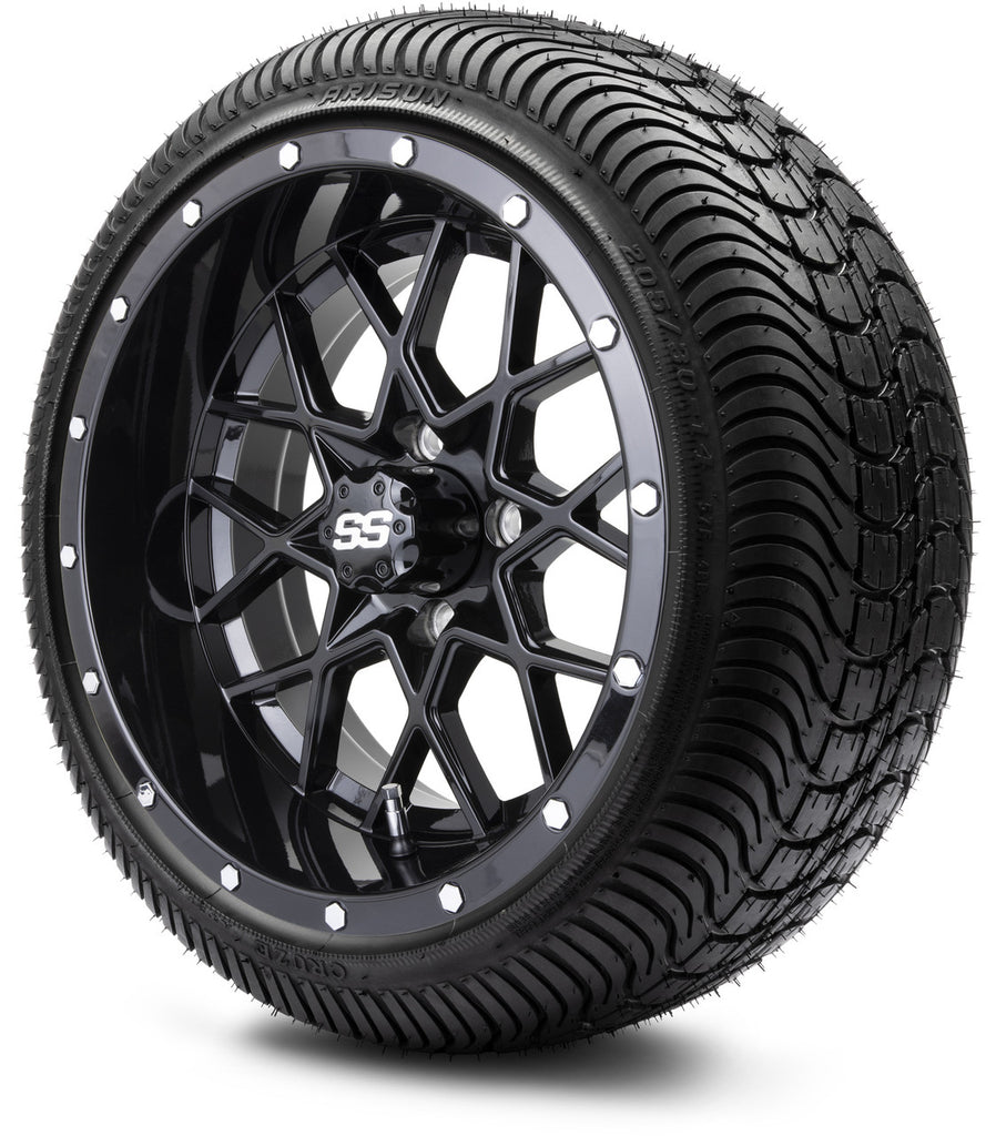 T&W Combo MODZ 14" Vortex Glossy Black Wheels & Street Tires Combo