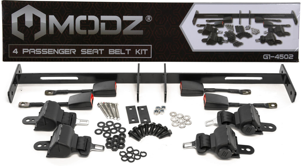 MODZ® Universal Golf Cart Retractable Seat Belt Combo (4 Belts) entire seat belt kit for golf carts equipped with rear seat kits.