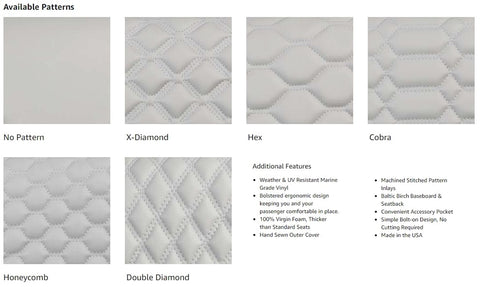 - Bolstered design to keep you and your passengers comfortable and in-place.