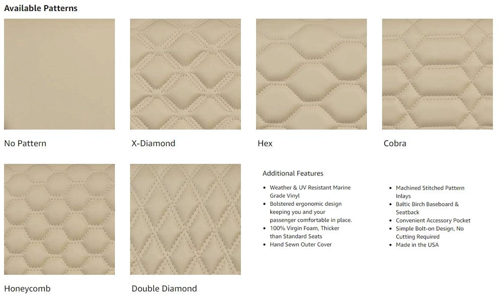 - Bolstered design to keep you and your passengers comfortable and in-place.