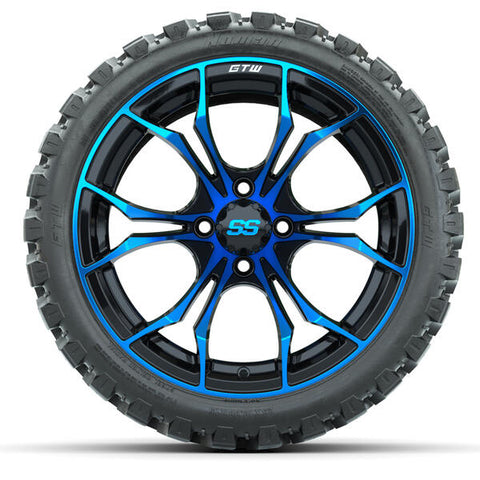 GTW Spyder Blue/Black Wheels 15x7 with 23x10-R15 Nomad All-Terrain Tires