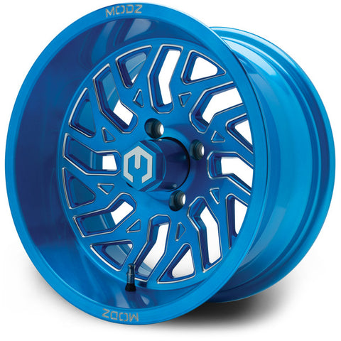 MODZ® Carnage Brushed Blue with Ball Mill 14" Golf Cart Wheel